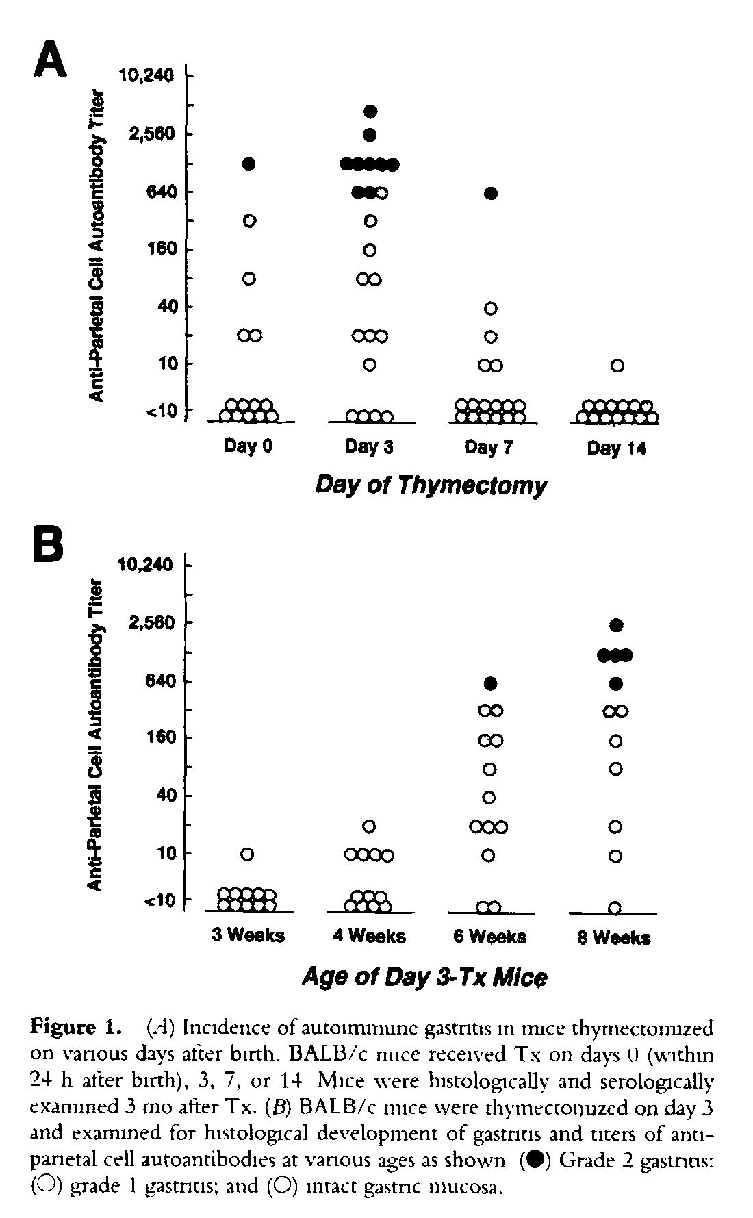 신생아 생후 3일째에 흉선을 제거하면(d3Tx), 마우스는 수 주 후 다기관 자가면역을 일으킵니다. 위염, 갑상선염, 난소염 등이 대표적입니다.