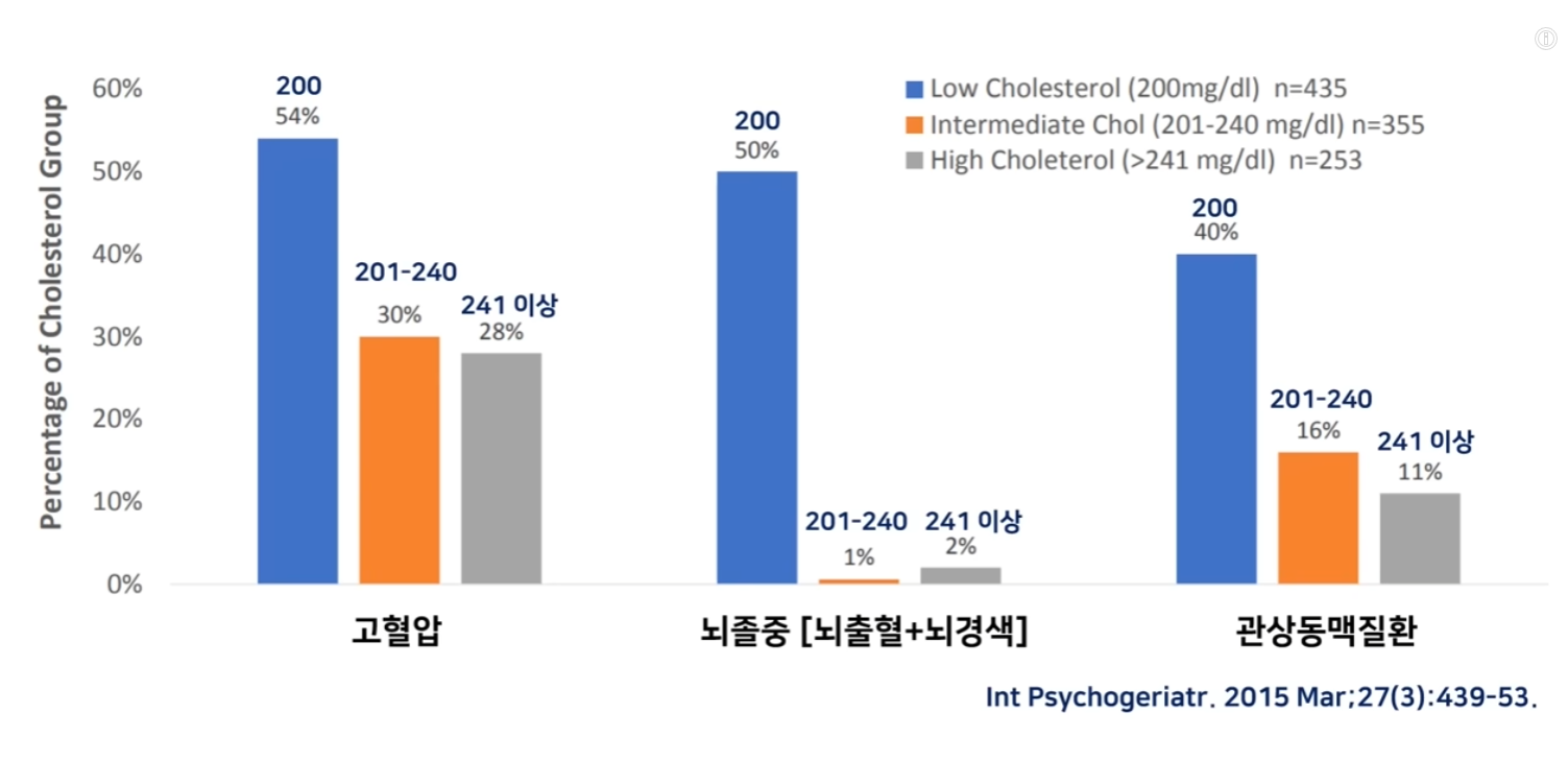 즉, 노년기에 콜레스테롤 수치가 높아서 인지가 좋은 것이 아니라,