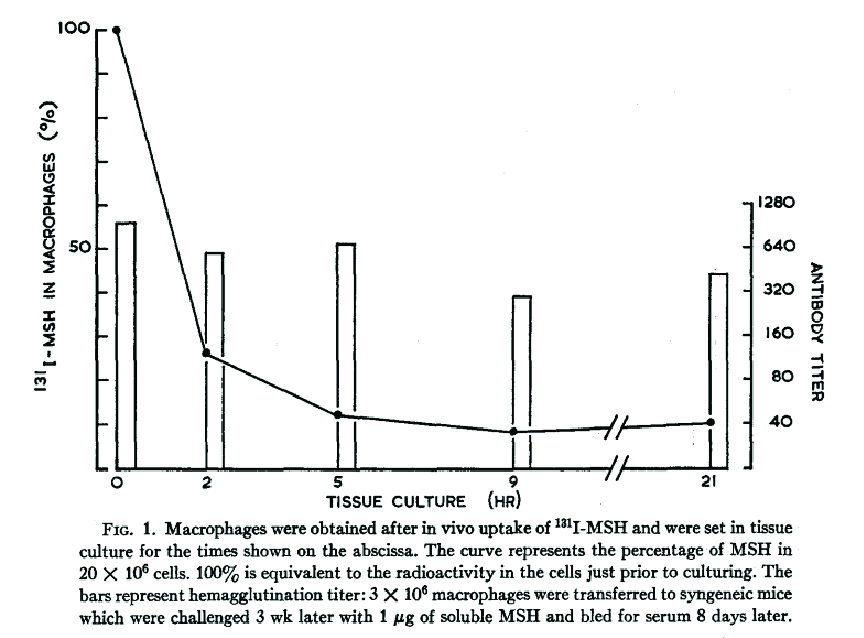 Unanue, Emil R., and Brigitte A. Askonas. "Persistence of immunogenicity of antigen after uptake by macrophages." The Journal of experimental medicine 127.5 (1968): 915-926. 논문 링크