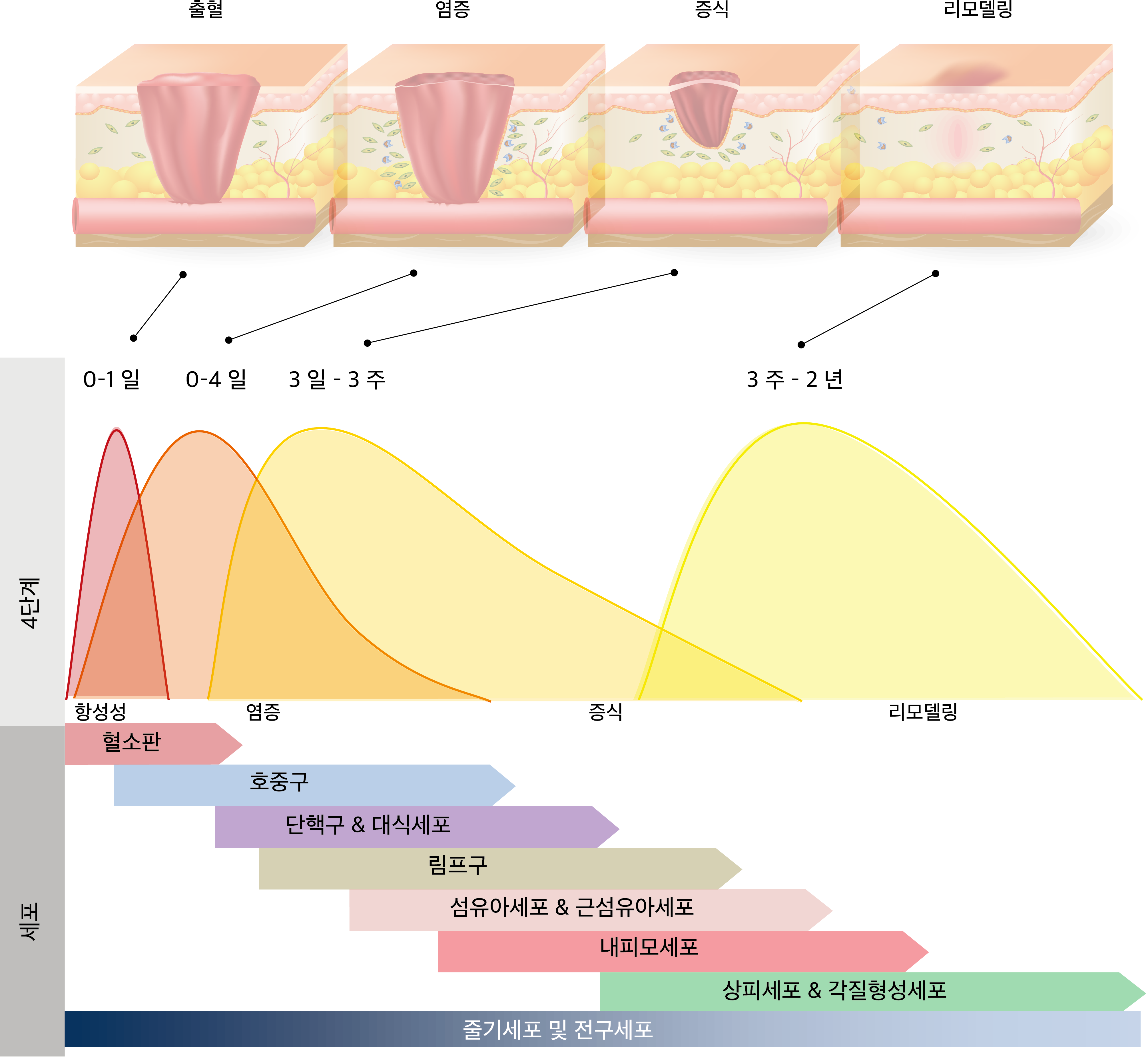일반적으로 상처 치유는 네 가지 단계로 구분하여 설명합니다.